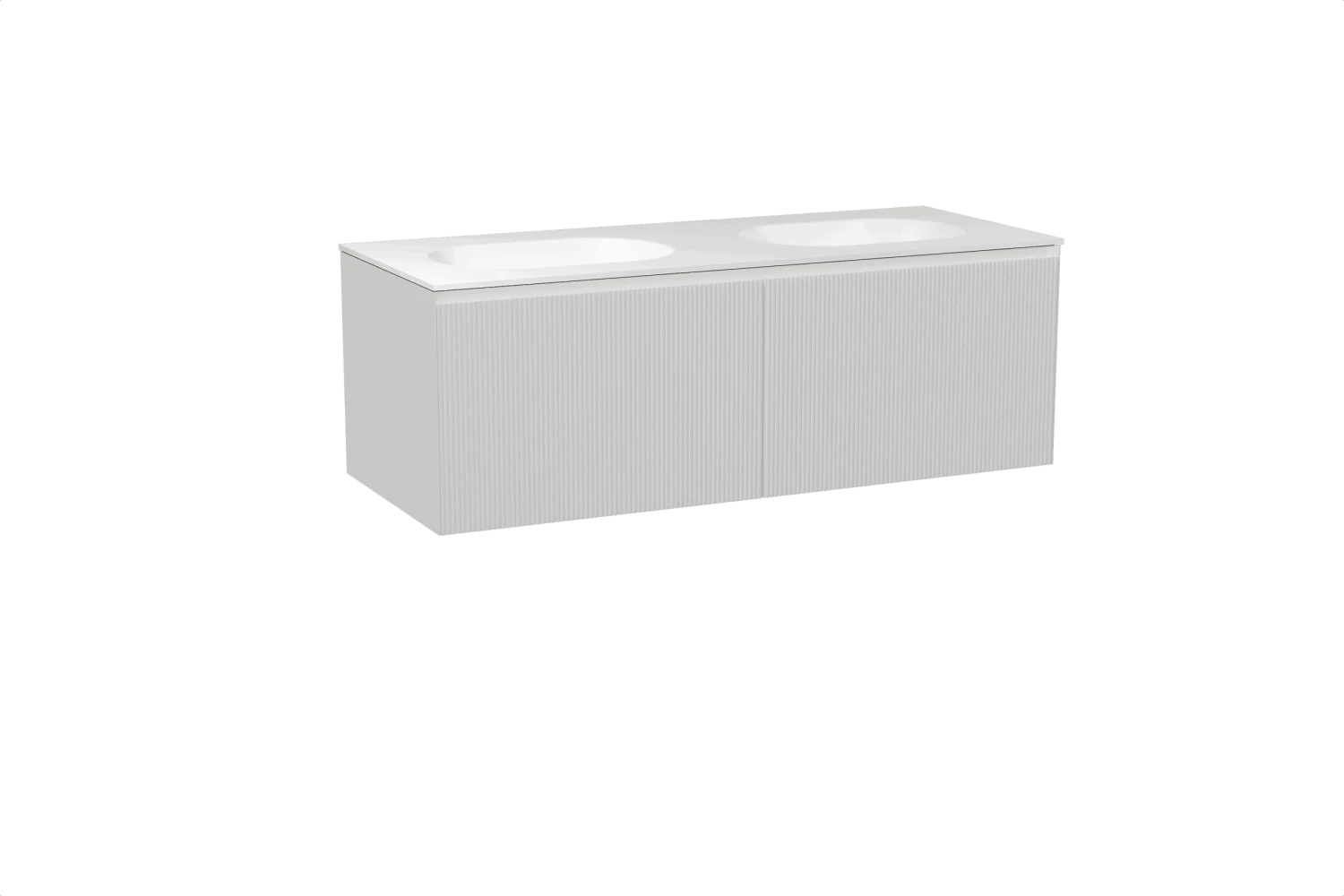 Balmani Fila Zwevend Badkamermeubel 135 X 55 Cm Mat Wit Met Tablo Oval Dubbele Wastafel In Solid Surface Mat Wit Verticale Symmetrische Rechte Ribbel