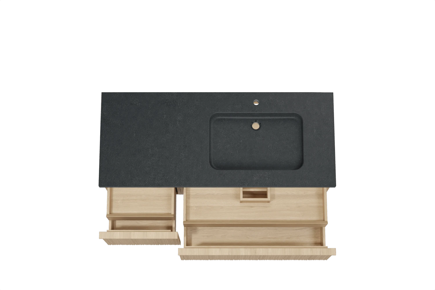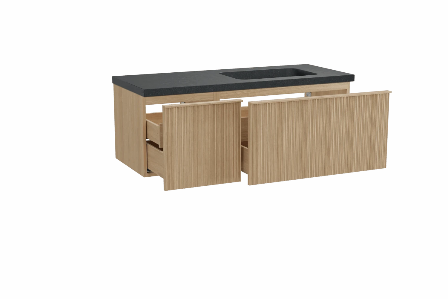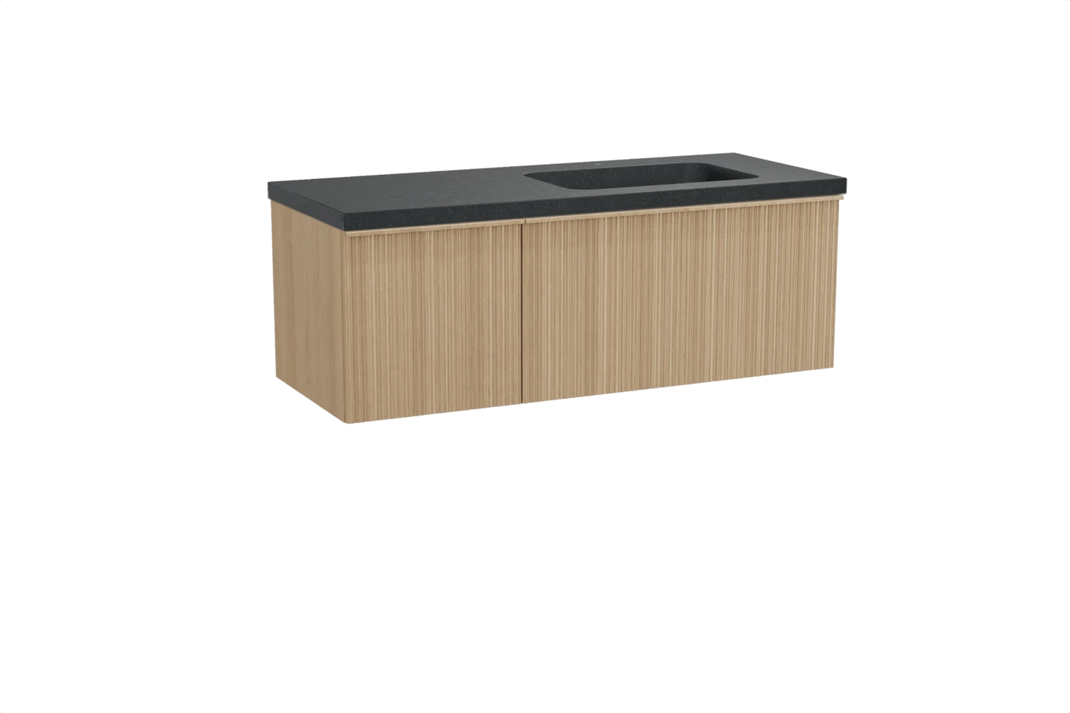 Balmani Forma Zwevend Badkamermeubel 135 X 55 Cm Natuur Eik Met Napoli Asymmetrisch Rechtse Wastafel In Graniet Graniet Zwart Verticale Asymmetrische Ronde Ribbel