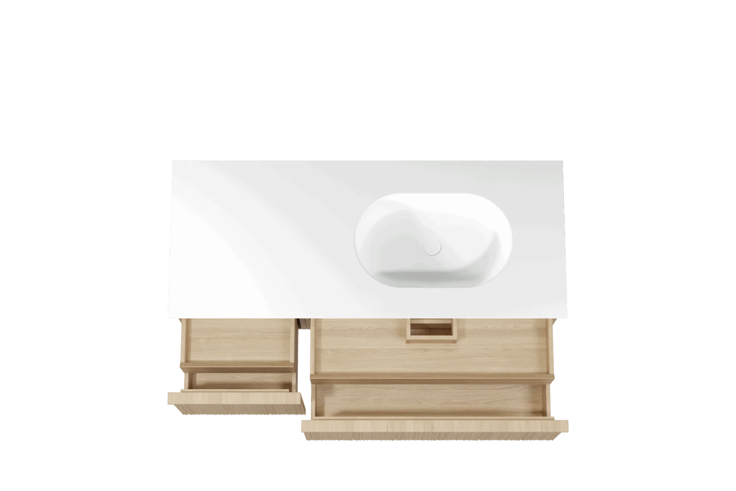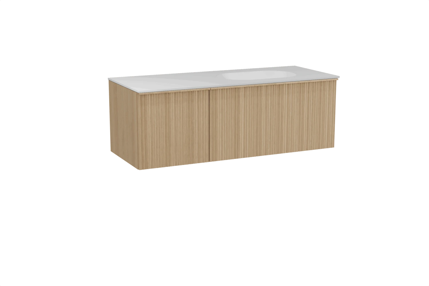 Balmani Forma Zwevend Badkamermeubel 135 X 55 Cm Natuur Eik Met Tablo Oval Asymmetrisch Rechtse Wastafel In Solid Surface Mat Wit Verticale Asymmetrische Ronde Ribbel