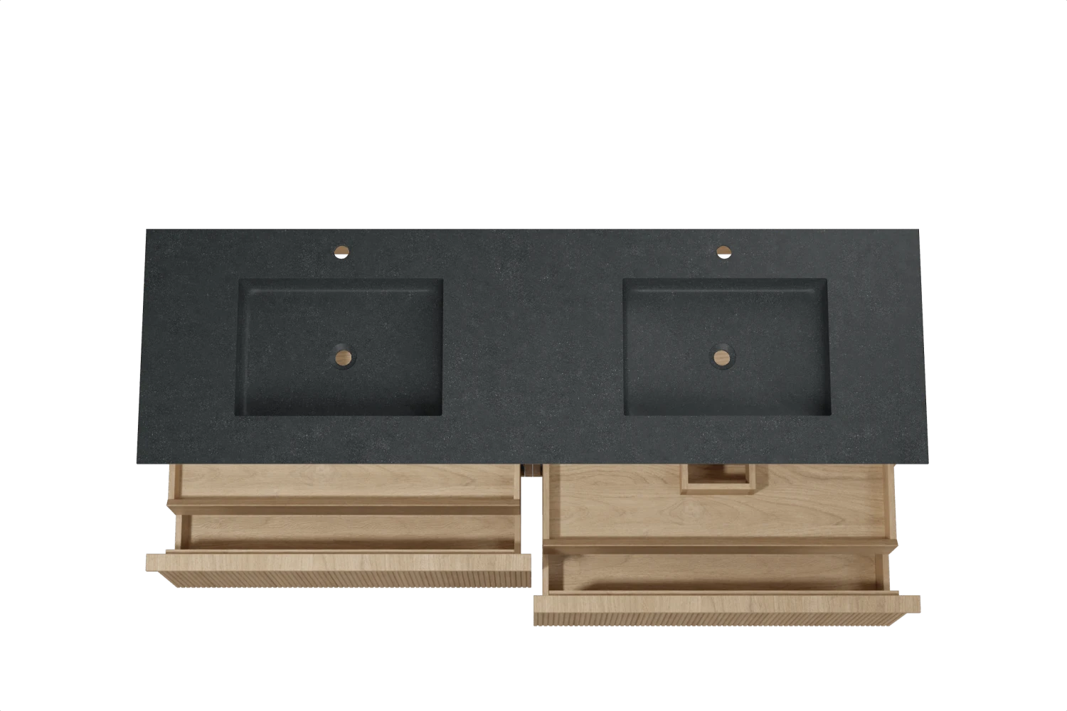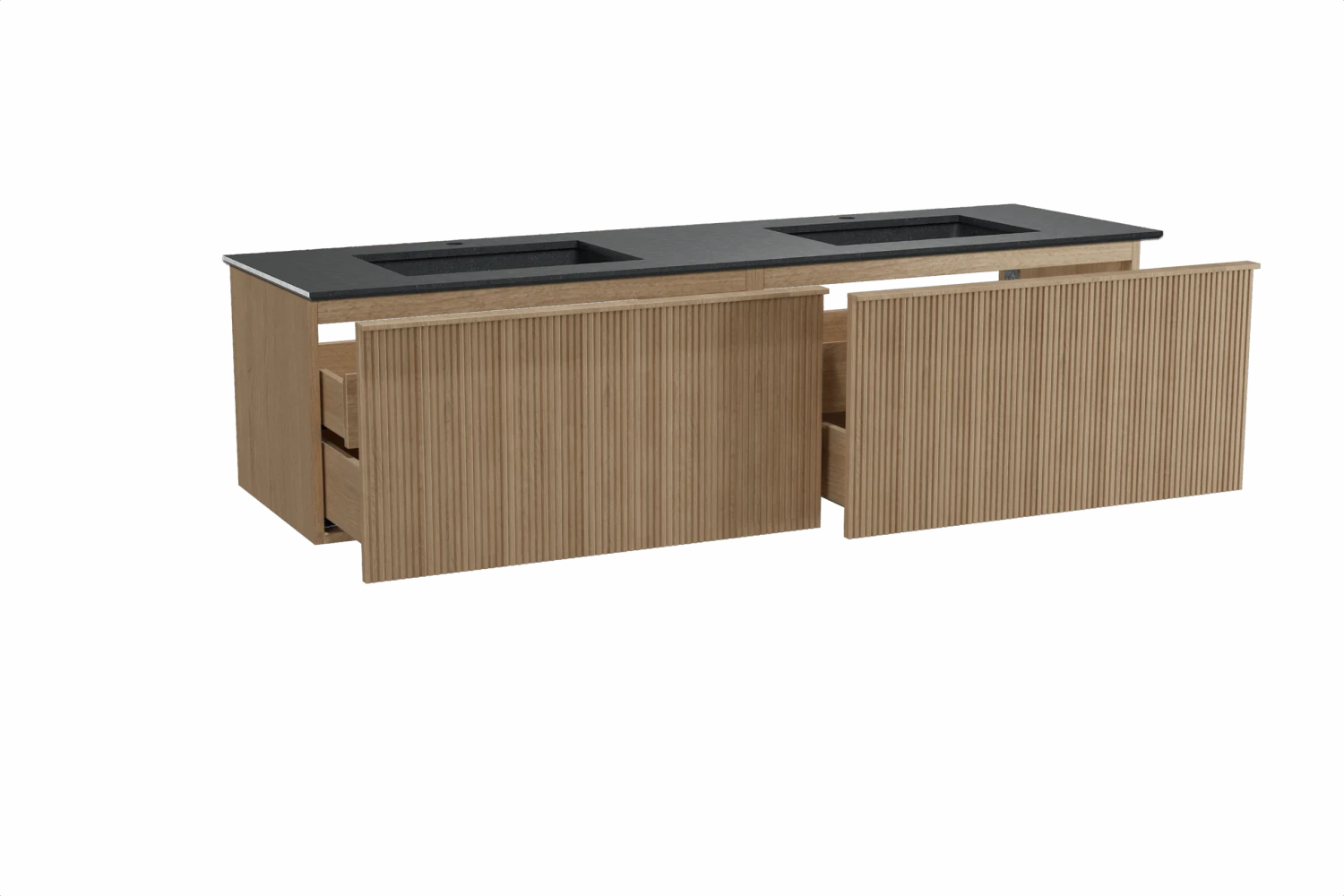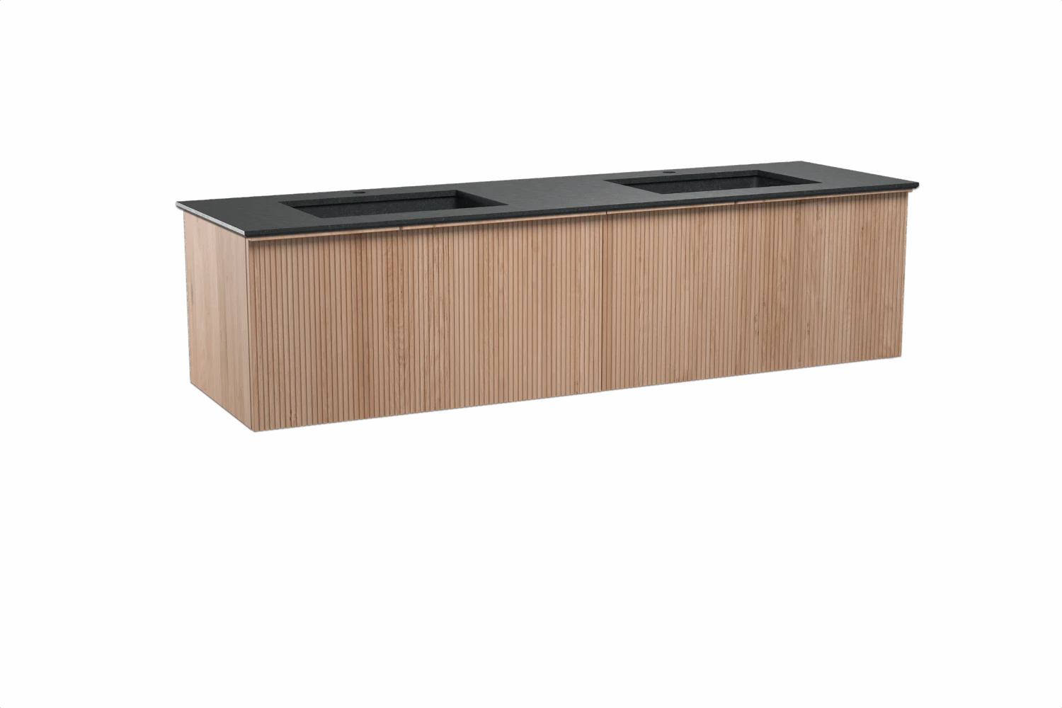 Balmani Forma Zwevend Badkamermeubel 180 X 55 Cm Natuur Eik Met Tablo Facetta Dubbele Wastafel In Graniet Graniet Zwart Verticale Symmetrische Rechte Ribbel