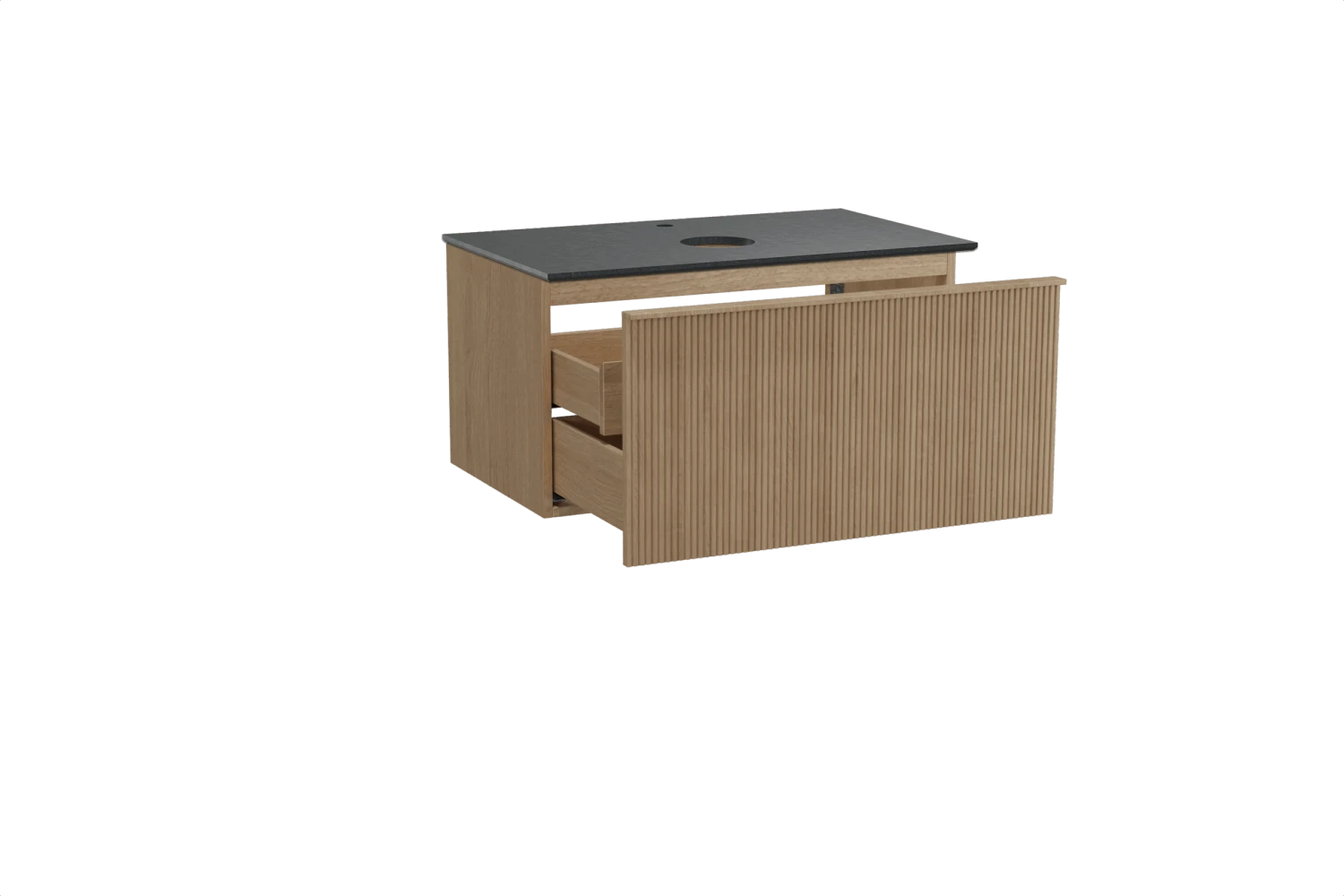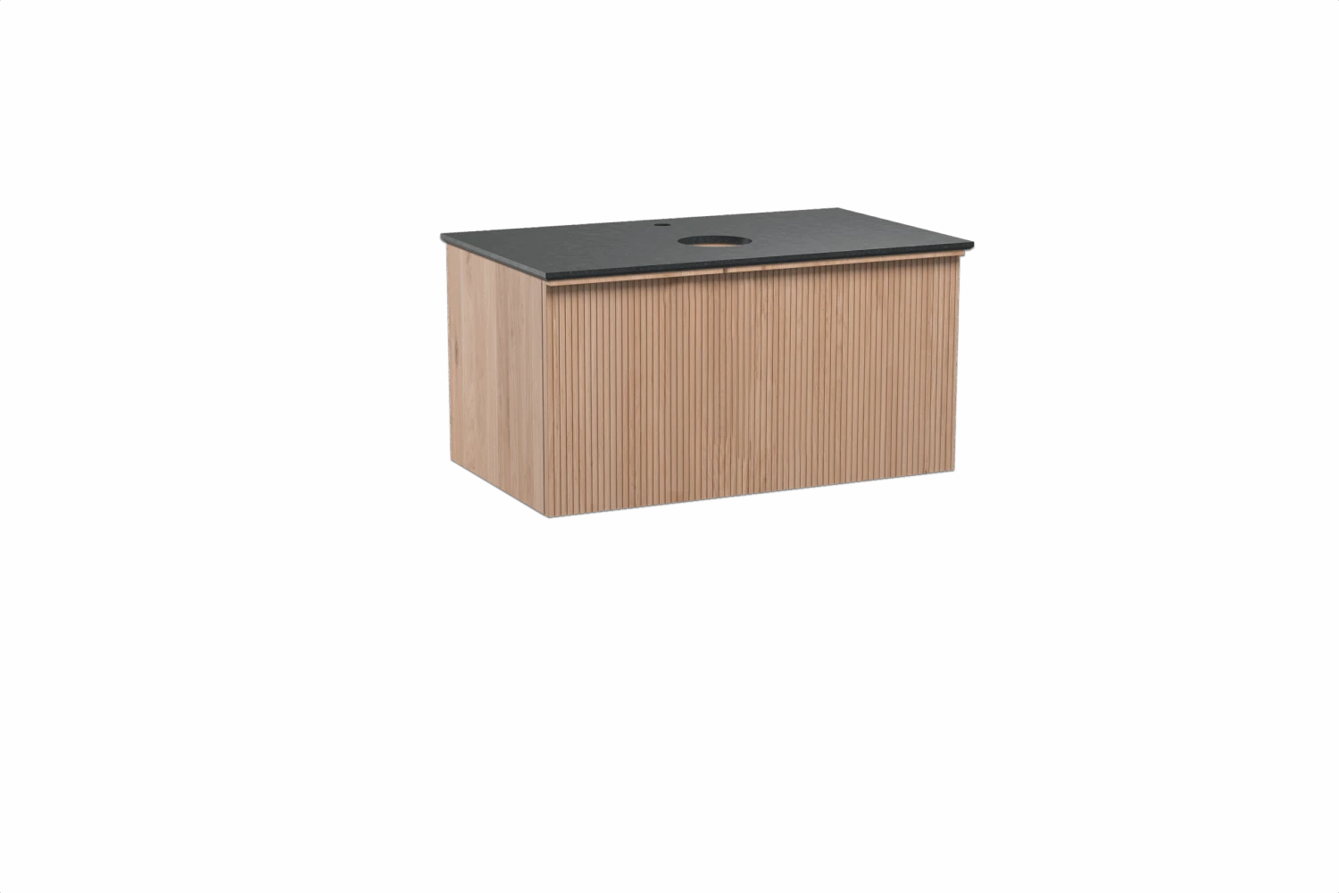 Balmani Forma Zwevend Badkamermeubel 90 X 55 Cm Natuur Eik Met Facetta Enkel Tablet In Graniet Graniet Zwart Verticale Symmetrische Rechte Ribbel