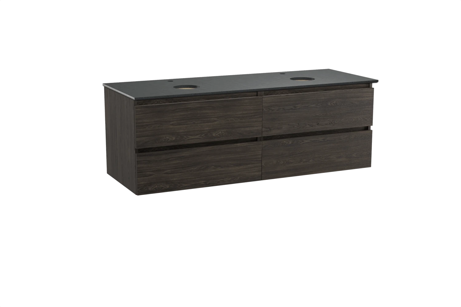 Balmani Lucida Zwevend Badkamermeubel 150 X 55 Cm Gerookte Eik Met Facetta Dubbel Tablet In Verzoete Graniet