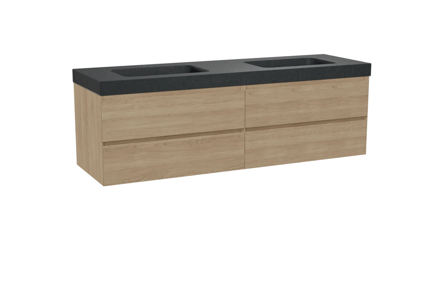 Balmani Mitra Zwevend Badkamermeubel 180 X 55 Cm Fineer Natuur Eik Met Napoli Dubbele Wastafel In Graniet
