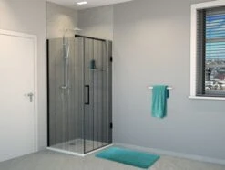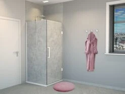 Balmani Modular Hoekdouche Met Deur 90 X 200 Cm Helder Glas Met Matte Strook Glanzend Chroom Profiel