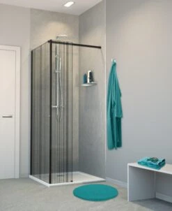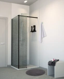 Balmani Modular Inloopdouche Met Vaste Zijwand 80 X 200 Cm Linnen Zwart Glas Mat Zwart Profiel
