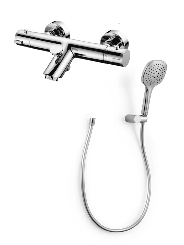 Linie Drum Thermostatische Badkraan Met Douchekop Glanzend Chroom
