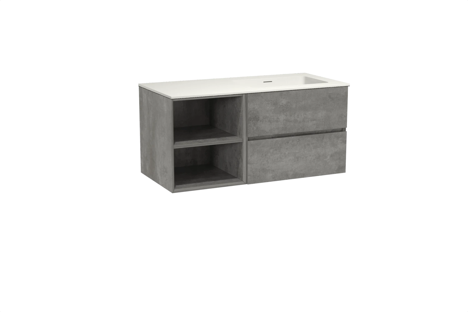Storke Edge Zwevend Badkamermeubel 110 X 52 Cm Beton Donkergrijs Met Mata Asymmetrisch Rechtse Wastafel In Solid Surface
