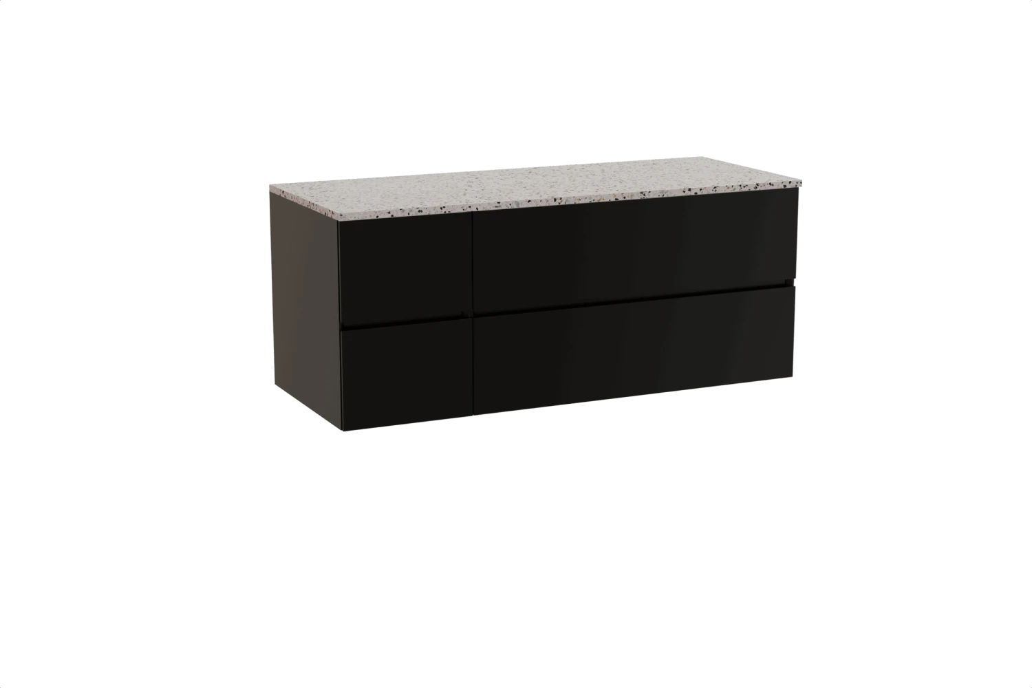 Storke Edge Zwevend Badkamermeubel 130 X 52 Cm Mat Zwart Met Tavola Enkel Of Dubbel Tablet In Mat Wit/zwart Terrazzo