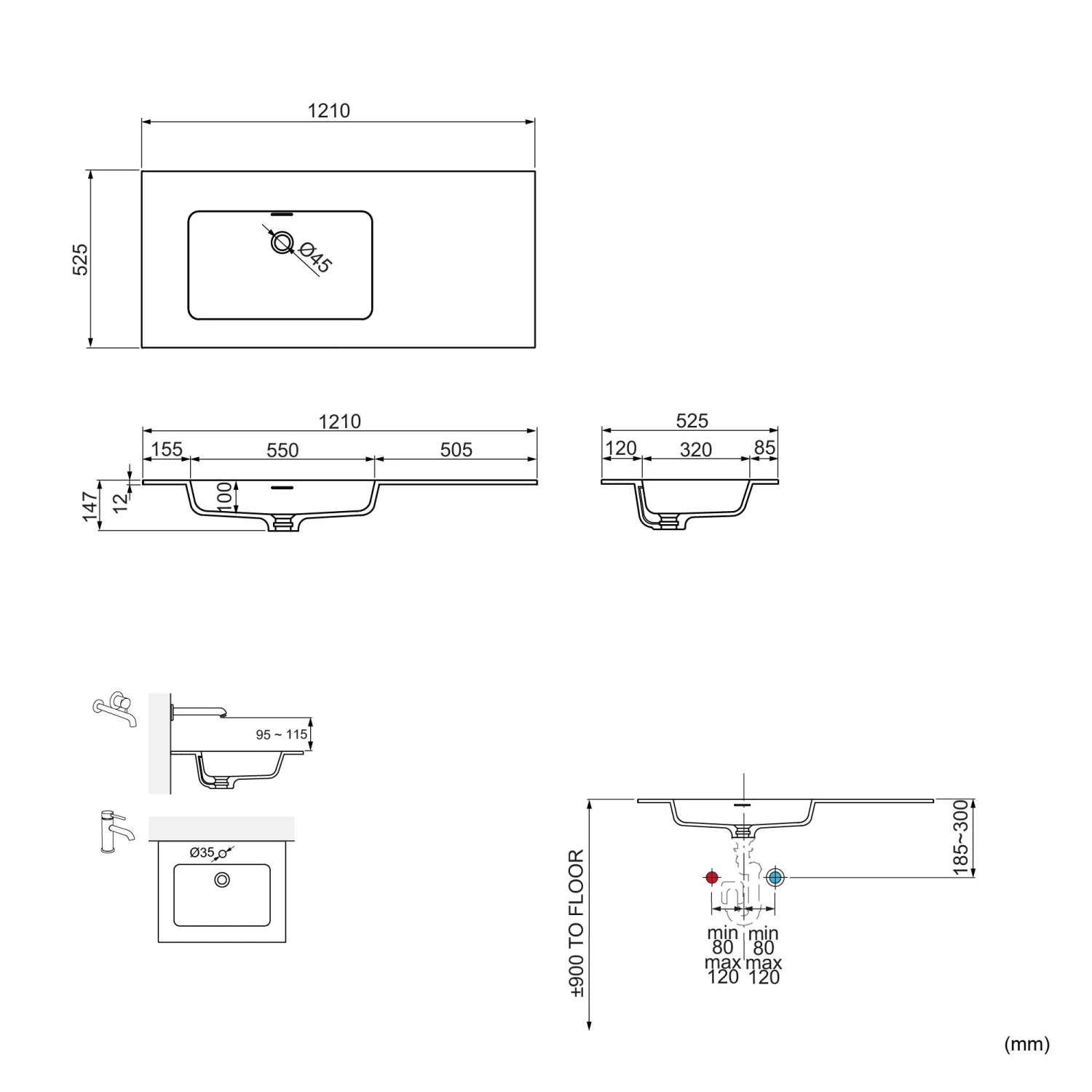 Storke Mata Asymmetrisch Linkse Wastafel Matte Solid Surface 120 X 52 Cm Combinatie Kast 35 Cm